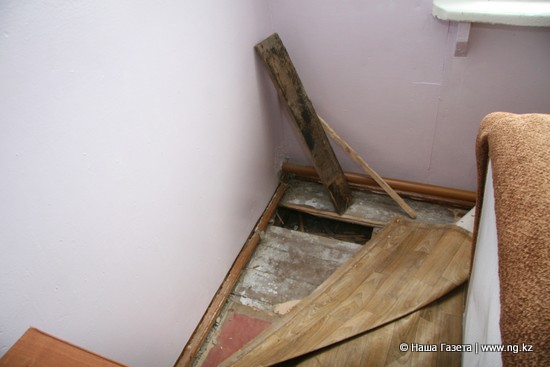 При постилке линолеума не позаботились о надлежащей вентиляции подпольного пространства - могло подгнить.
