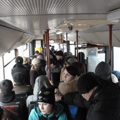 Автобусы грязные, водители курят (на 10 маршруте), и страшно скользкий настил, на 24-м красавцы в белых рубашках, но грубят, как грузчики. Еще постоянно запихивается дружбан и он (или она) во втором отсеке выхода болтается и разговорами отвлекает. А то, что по мобильнику разговаривают, так это везде. Не приходилось мне видеть водителя, не болтавшего во время рейса. Пассажиры тоже хороши! Суют водителю 5-ти или 10-ти тысячную, а он найди (да еще утром) сдачу. Призадумайтесь над собой!!!!