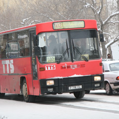 Автобус № 102 (ТОО «TTS-Reisen») в пятницу, 17 января, подошел к остановке по ул. Тарана в третьем часу дня. Интервал на табличке - 8-9 минут, автобус подъехал через 10 минут.