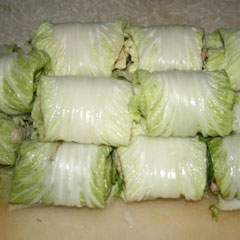 Сразу скажу, китайская кухня тут ни при чем. Речь не о характерном вкусе, который определяется набором специй, а об использовании для голубцов листьев пекинской капусты. В салатах она мне очень нравится, но использовать ее в горячем виде мне почему-то до сих пор не приходило в голову.