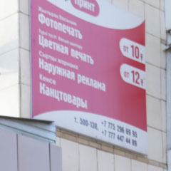 Есть конечно и дорогие вывески и стильно оформленные фасады... но преобладают всё же разномастные баннеры на бруске, порой уродующие фасад даже нового облицованного приличной плиткой здания. Хотя для многих предпринимателей кричащий транспарант незамысловатым шрифтом - это единственная возможность привлечь потенциальных клиентов, которая по карману...потому что хорошая реклама - вещь не дешевая.