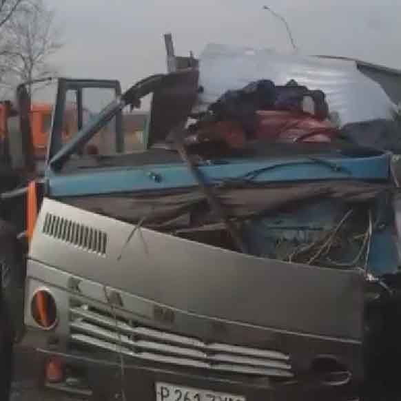 Вблизи поселка Семилетка произошло ДТП с участием трех автомобилей. Водитель автомобиля КамАз, не соблюдая необходимую дистанцию, совершил столкновение с двигавшимся впереди него КамАЗом.
