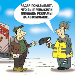 Едет себе по городским улицам грузовичок какого-то предприятия, продукцию по магазинам развозит, а попутно несет на борту рекламу и этой самой продукции, и предприятия-изготовителя. Знакомо? Знакомо. И вдруг такое авто останавливает сотрудник дорожной полиции, начинает спрашивать водителя про 40% каких-то от площади машины, про окраску, про надписи. Водитель натурально не понимает, в чем дело. Машина принадлежит фирме, то есть частная. И воля фирмы, что и сколько на ней писать, лишь бы цензурное. Или дело не так обстоит?