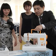 На этот раз на сайте было много просьб помочь в приобретении швейных машин. Их все выполнил Казкоммерцбанк, закупив многофункциональные машинки "Veritas". В Костанайской области 6 из них были вручены представителю рудненского общественного объединения "Жана Омир"и еще 3 на днях уедут в Аркалык, в ОО инвалидов "Мугедек".