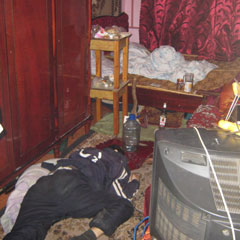 Взяв в руки молоток, он ударил несколько раз престарелую мать по голове и отправился в гости к сестре. Последнюю он дома не застал, зато его встретили два племянника и девушка, распивавшие спиртное. Компания предложила присоединиться к ним. Как пояснял задержанный, в ходе застолья между ним и племянником несколько раз возникали конфликтные ситуации. Позже, когда гостья ушла, а парни легли спать, он нашел в квартире топор, зашел в комнату, где на полу спал племянник, и ударил его острием топора по затылку.