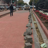 Ещё вчера территорию от ТЦ "Атриум" до Шахматного клуба оцепили сигнальной лентой. А уже сегодня, 19 сентября, там начали частично снимать брусчатку. На этой территории часть обычного камня заменят стеклянными вставками