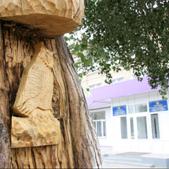 Тополь в ее дворе - большой и старый. Ствол разорван бурей и возрастом. Рана заделана и прикрыта резной совой. На ветвях сидят еще две райские птицы, изготовленные «на трудах», как по-старому называют все уроки технологии. А вылезающие из земли корни старожила заботливо завалены булыжником. Не дерево, а воплощение духа школы, где все делается добротно, не на показ, а как в хорошем доме, прежде всего для пользы и радости живущих в нем.