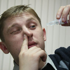 - Перед тем как вы соберетесь закапывать капли в нос, - советует врач, - нужно освободить от слизи ноздри, но не обе сразу, а каждую по очереди, одновременно прижимая другую большим пальцем к носовой перегородке. Лучше закапывать капли в нос, сидя на стуле. Голову нужно слегка запрокинуть, немного наклонив ее в ту сторону, куда будете закапывать лекарство. Левой рукой слегка приподнимите кончик носа, а правой выдавите несколько капель из пипетки или пластикового флакончика, не касаясь ноздри. Закапывать капли, запрокидывая голову, не стоит: капли попадут в носоглотку и никакого эффекта не будет.