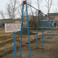 - Мы начали вкапывать столбы и огораживать территорию еще с 10 октября, - рассказал «НГ» прораб, отказавшийся назвать свою фамилию. - Сейчас вот занимаемся выкапыванием турников, рукохода, баскетбольных щитов и переносим их за пределы участка. Это наша часть работы, кто дальше здесь будет производить строительство синагоги - я не знаю.
