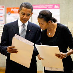 Никто до Барака Обамы не занимал Овальный кабинет в Белом доме во времена таких тяжелых испытаний; исторические параллели можно провести разве что с приходом к власти Авраама Линкольна перед Гражданской войной или Рузвельта во время Великой депрессии. На плечи избранного президентом 47-летнего сенатора ляжет необходимость вести две войны: защищать страну от террористов и решать сложные экономические вопросы.