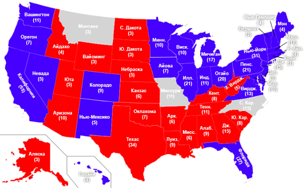 Итого: за Обаму 349 голосов выборщиков, за Маккейна - 159 голосов