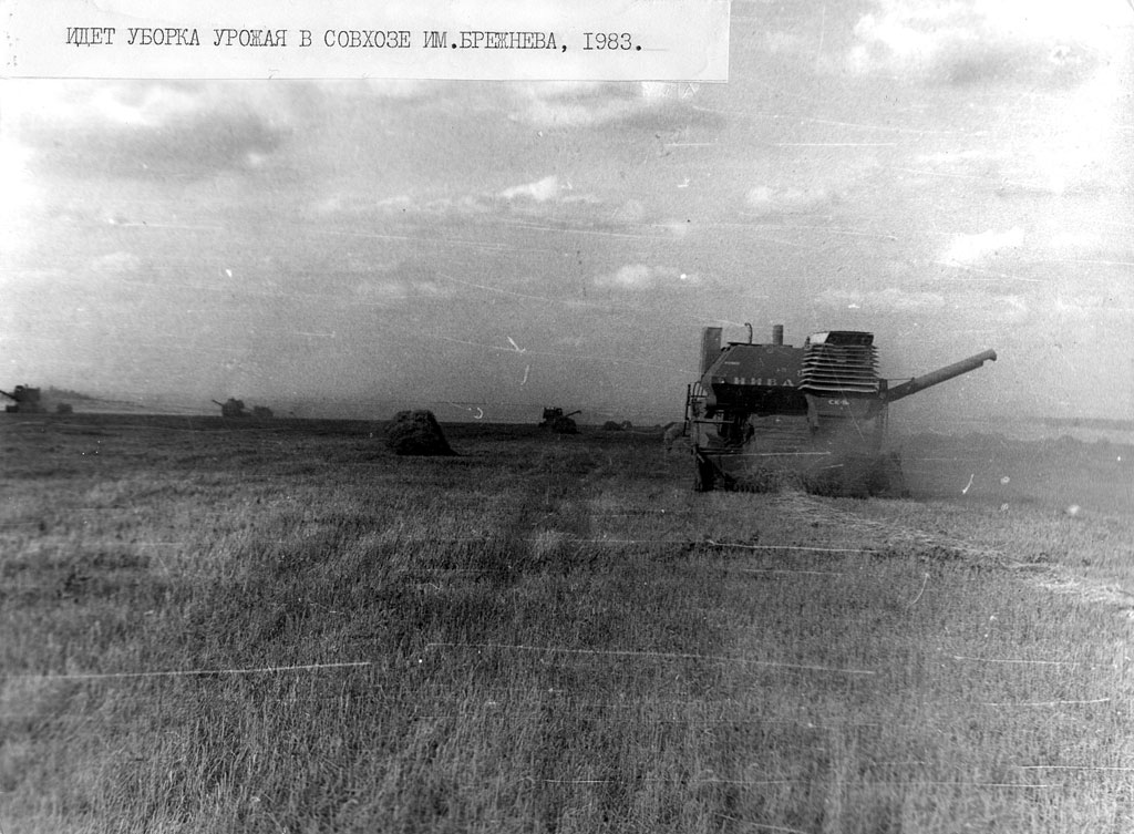 Уборка урожая в совхозе им. Брежнева. Боровской (Мендыкаринский) р-н. 1983 г.