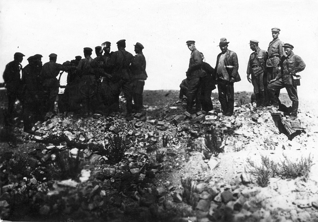 Развалины тюрьмы в Тургае , в которой сидел Амангельды Иманов до его расстрела в 1919 году. Копия с фотографии 1937 года