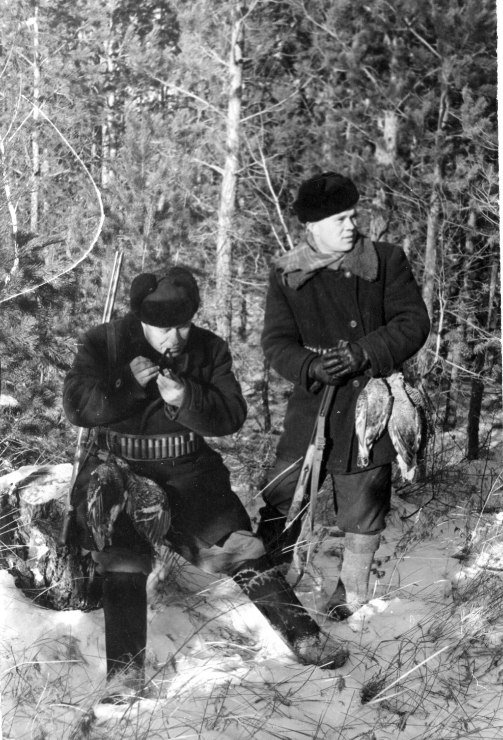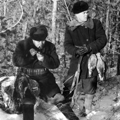 Охота возле зерносовхоза «Славянский» Карабалыкского р-на. На привале - заместитель директора совхоза Никифор Старчиков и электросварщик Владимир. 1960 г.