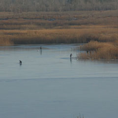 Наши недавние первые морозы (до минус 8 ночью) сковали ледком тобольские заливы. Буквально за пару дней лед достиг 5-6 см. И сразу же на льду появились любители острых ощущений. В один из дней в районе КЖБИ мне довелось наблюдать сразу за пятью такими горе-смельчаками. Они сидели на льду буквально в двух метрах друг от друга, что тоже необычайно опасно. Сейчас в оттепель, когда речной лед подтаял, слава богу, рыболовов уже не видно, но какой-нибудь разведчик нет-нет да прокрадется, покрасуется в прибрежной тобольской зоне. И, наверное, не задумывается о том, что куда приятнее, когда ты ищешь рыбу, а не рыба ищет тебя.