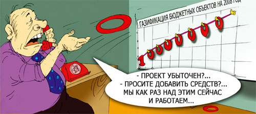 Газификация бюджетных объектов в Костанайской области, которая должна быть завершена до конца 2008 года, не будет закончена, как предписано планами, она вообще, похоже, под вопросом. Разница между реальными рыночными и утверждаемыми в столице ценами на газовые трубы привела к тому, что часть подрядчиков отказалась от разработки проектов из-за их убыточности. Данные чиновников и реальная стоимость строительных материалов расходятся почти в 2 раза. До окончания сроков сдачи работ осталось полтора месяца.