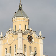 Башня с часами в центре Костаная к Новому году засверкает огнями. 3 декабря начались работы по украшению купола башни и циферблата.