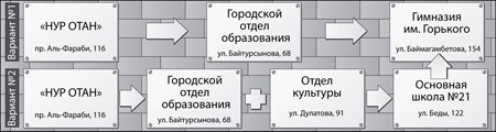 Есть, правда, еще вариант с двумя дополнительными элементами: отдел образования и отдел культуры и развития языков займут здание основной школы №21, которая, в свою очередь, переедет в гимназию. Но и при этом раскладе нынешнее здание городского отдела образования достанется «Нур Отану».