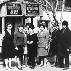 Интересный факт: в штате архива числились одни мужчины. В 1940 году в областном и районных архивах работали 14 человек. Они снабжались спецодеждой и имели отпуск в 24 дня. Штатный контингент архивных органов обслуживался по линии спецторга наравне с сотрудниками УНКВД. Ковалев лично получал карточки на сахар и хлеб для работников облгосархива. Эстафету командования архивом приняли женщины в 1947 году и удерживали позиции по 1963 год.