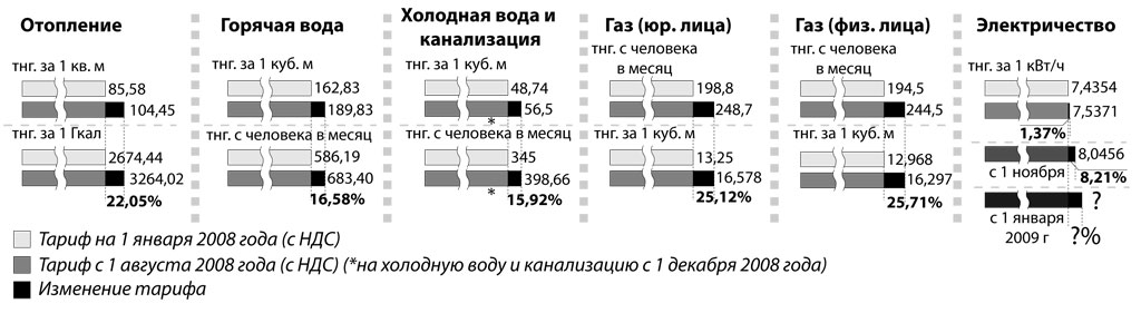 Как менялись тарифы на коммунальные услуги в Костанае в 2008 году