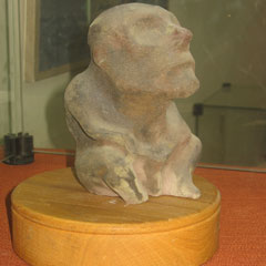 - Центральное место выставки мы решили посвятить известняку, - говорит Суслов. - Это самый загадочный экспонат: с одной стороны он имеет форму головы барана, а с другой - просматривается силуэт человека. Этот известняк был найден в могильнике совсем случайно, так как был спрятан в четырех породах камней. К слову, до ближайшего месторождения известняка от Лисаковская более 100 км, тем не менее он был доставлен сюда. Почему он был спрятан именно в четыре породы? Что это символизировало - четыре стихии, четыре стороны света? Загадка и только!