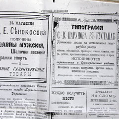 Четвёртая страница была целиком отдана рекламе. Тут можно было прочесть объявления о том, что в магазине А.Е. Сенокосова получены шляпы мужские, фуражки спортивные и разные галантерейные товары; что типография Парунова принимает заказы, что в парикмахерскую А.М.Никитина требуется парикмахер, а в Кустанайском казённом сельскохозяйственном складе Переселенческого управления для продажи местному населению «запасены плуги однолемешные и двухлемешные заводов Гена Брянского и Д. Гриевза».