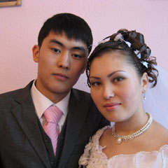 Чувства молодоженов друг к другу дали о себе знать еще в первом классе. Как и положено влюбленному мальчику, Диас носил портфель, угощал Динару конфетами и дарил ей открытки. Часто, чтобы проверить на выносливость друга, Динара набивала свой портфель чем-нибудь потяжелее. Девять лет, которые молодожены проучились вместе, они сидели за одной партой. После девятого класса, когда Диас поступил в колледж, а Динара осталась в школе, их чувства разгорелись с новой силой. Ну, а позже эта сила привела их в загс.