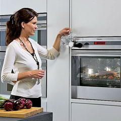 Существует множество приспособлений, делающих пользование духовкой удобным. Например, дверца-тележка облегчит выдвижение противней и обезопасит вас от ожога. Противни и решетки навешиваются на дверь и при открывании выезжают вместе с ней наружу. Ограничительные упоры не позволяют им выпасть при выдвижении. Весьма практичны телескопические направляющие, с помощью которых противни легко и безопасно выдвигаются, и можно не опасаться, что они опрокинутся. Часто такие направляющие предлагают как дополнительную опцию.