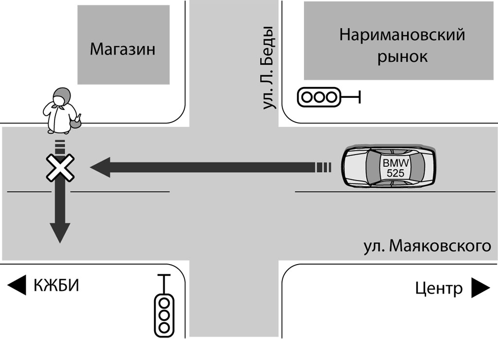 23-летний полицейский ехал на «БМВ-525» из центра Костаная в сторону КЖБИ. Он возвращался домой после окончания рабочего дня. Как говорится в сводке, «наезд был совершен на пешехода, переходящего проезжую часть при неработающем светофоре». ДТП произошло около полуночи. 59-летняя Надежда М. в ту ночь возвращалась из магазина с бутылкой водки. Соседи, живущие на ул. Краснопартизанской, говорят, что они с мужем частенько выпивали на пару.