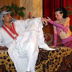 В этом году организаторы предложили участницам не соревноваться, а потанцевать для души, отбросив спортивный азарт. Каждое точеное движение бедра, плавный взмах руки, чарующий взгляд восточных красавиц, в жизни работающих врачами, бухгалтерами и продавцами, оценивали не только зрители, но и халиф, явившийся на сцену по сценарию фестиваля. Для большего эффекта использовались всевозможные атрибуты - блестящие платки, большие полотна ткани, при взмахе которыми сменялась живая картинка, горящие свечи, веера. Коллектив «Богиня» показал настоящий восточный обряд - проводы невесты. В последний путь от родительского порога проводить красавицу-дочь собрались родственницы, подружки. Церемония сопровождалась песней матери девушки, которая обращалась к жениху с просьбой холить и лелеять ее дочь. Бурными аплодисментами зрители встретили прошлогоднюю участницу, руководителя четырех коллективов Надежду Мальцеву, которая тогда вышла на сцену на восьмом месяце беременности. А ее сын, завоевавший на пару с мамой в прошлом году приз в номинации «За мужество», сидел в зале на руках у папы.