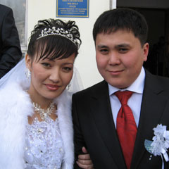 Молодожены знакомы больше 5 лет. Учеба в одной группе сблизила молодых людей только на третьем году знакомства. В гостях у друзей они взглянули на друг друга несколько иначе, чем в стенах университета. Тогда и обнаружили, что у них много общего. Вечер прошел в разговорах, а на следующий день состоялось первое свидание. Прогулка по парку определила: они влюблены. Тогда же парень подарил Макпал кольцо, которое девушка никогда не снимает. Три года спустя попросил стать его женой. Девушка согласилась, и в канун 8 Марта влюбленные поженились.