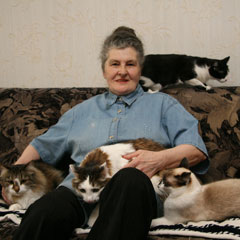 - Это Сема! Это Вася! Это Кетя! Это Митя! Вот они, мои детки! - улыбается пенсионерка Валентина НЕСМЕЯНОВА, знакомя с порога со своей пушистой мурлыкающей братией, живущей у нее в квартире. С их веселой хозяйкой корреспондент «НГ» познакомилась на недавней выставке кошек. Тогда Валентина Александровна ходила между клеток с участниками и сокрушалась, что не взяла своих питомцев. «Уж они бы точно, что-нибудь да выиграли!»