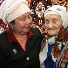 Обитательнице Рудненского дома-интерната №2 Каныш БАЙЖАНОВОЙ 102 года. Последние 4 года она мечтала найти свою дочь - Валентину МУНГУЖИНОВУ. В 2005 году дочь осудили за мошенничество, и она потерялась из жизни матери.
