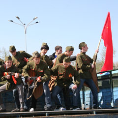 64-ю годовщину Дня Победы в Костанае отметят традиционным парадом. Организаторы обещают, что театрализованное шествие будет не менее зрелищным и ярким, чем в прошлые годы. Корреспонденты «НГ» стали свидетелями репетиции праздника и выяснили, что будет происходить в областном центре 9 мая.