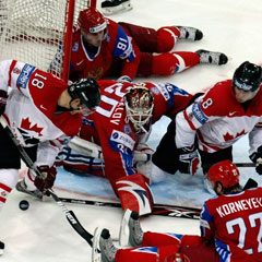 - Русская команда по сбалансированности и силе духа напоминает мне классическую энхаэловскую «династию». То есть коллектив, который может выиграть несколько Кубков Стэнли подряд. В Берне мы увидели, что у русских есть все: уверенный вратарь, сверхнадежная защита и талантливые форварды. В последний раз столь же мощная дружина приезжала из Москвы в свитерах с надписями «СССР».