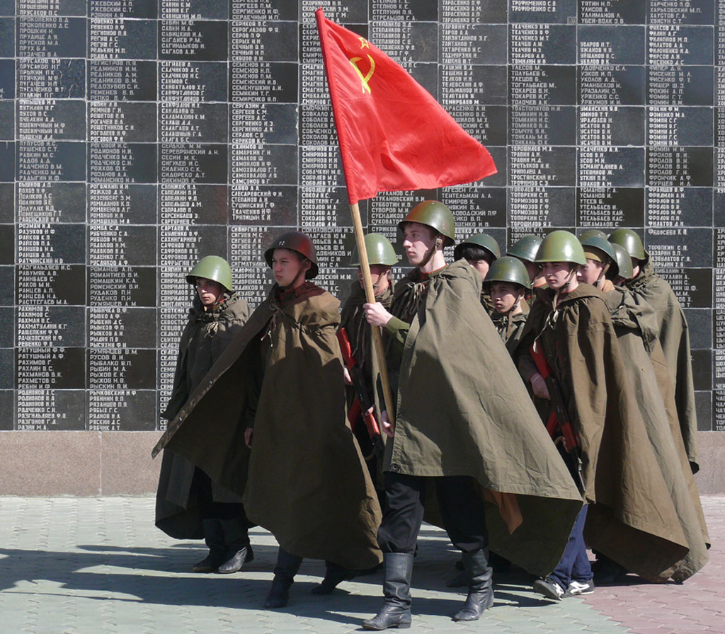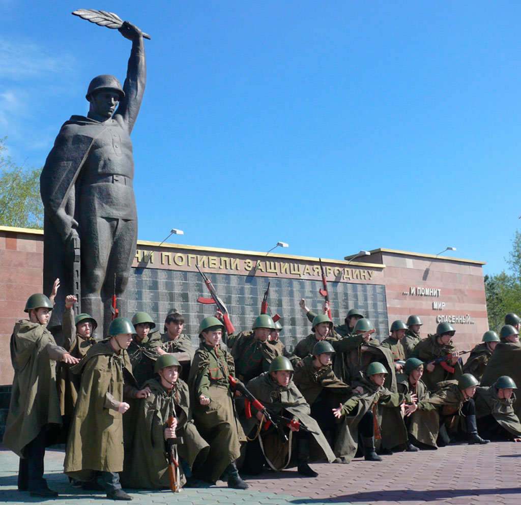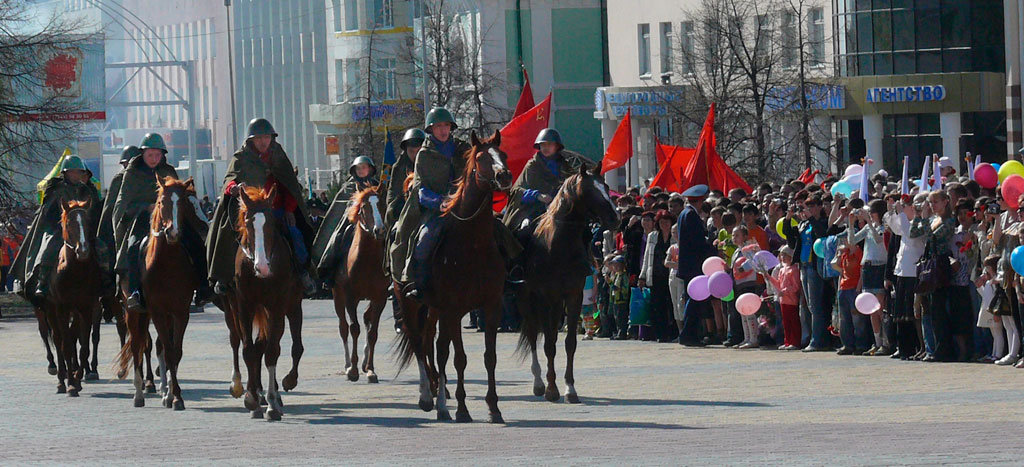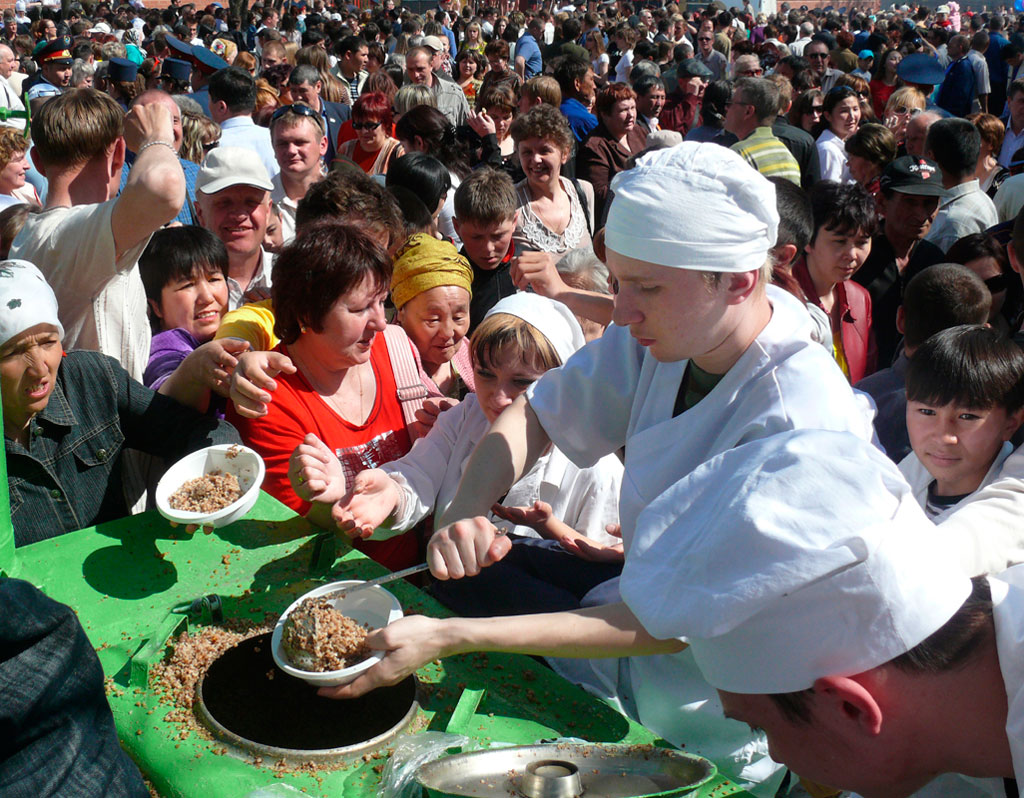 Он считается самым искренним и до сих пор объединяющим людей на большей части постсоветского пространства. В неискренности нас и не упрекнешь. Подножия памятников заваливаем цветами. Радуемся мирной жизни громко, пьем много, закусываем всласть. В Костанае одна в/ч 6697 вывезла в походных котлах 240 кило солдатской гречневой каши с мясом. Не осталось ни крошки.