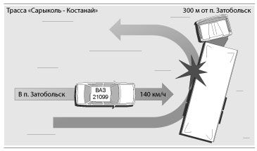 Грузовая машина «МАН» направлялась в Кокчетав. Водитель - не местный житель, свернул не на ту развилку дороги. Двигаясь со стороны Корейского моста, дальнобойщик должен был продолжать движение по Боровской трассе, но свернул на Сарыкольскую. Поняв ошибку, 48-летний гражданин Белоруссии принялся разворачивать большегрузную машину с оборудованием для молочного производства. В этот момент по трассе на большой скорости неслась «девятка», водитель поздно увидел фуру, перегородившую дорогу... Кстати, фура совершала маневр в неположенном месте без каких-либо опознавательных знаков. А «жигули» шли на скорости не менее 140 км/ч, о чем, по словам заместителя командира батальона дорожной полиции Темиржана АУЛАБАЕВА, свидетельствует тормозной путь машины,