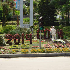 По всему Сочи - тысячи клумб, в которых яркие цветы расцветают надписями «Сочи-2014».