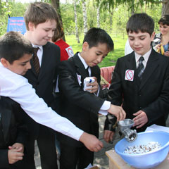 - Я посмотрел ролик и ужаснулся, когда увидел, к чему приводит курение, - говорит ученик 5 «Б» класса СШ №1 Лятиф ГАСАНОВ, перемалывая сигареты в мясорубке. - Сам я никогда в жизни не буду курить.