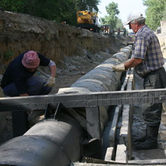 - Сначала прокладываем новый водовод, - сообщил «НГ» главный инженер ТОО «АБЗ+» Владимир МЯГЧЕНКО. - Потом будем демонтировать старый, диаметр которого в два раза меньше.