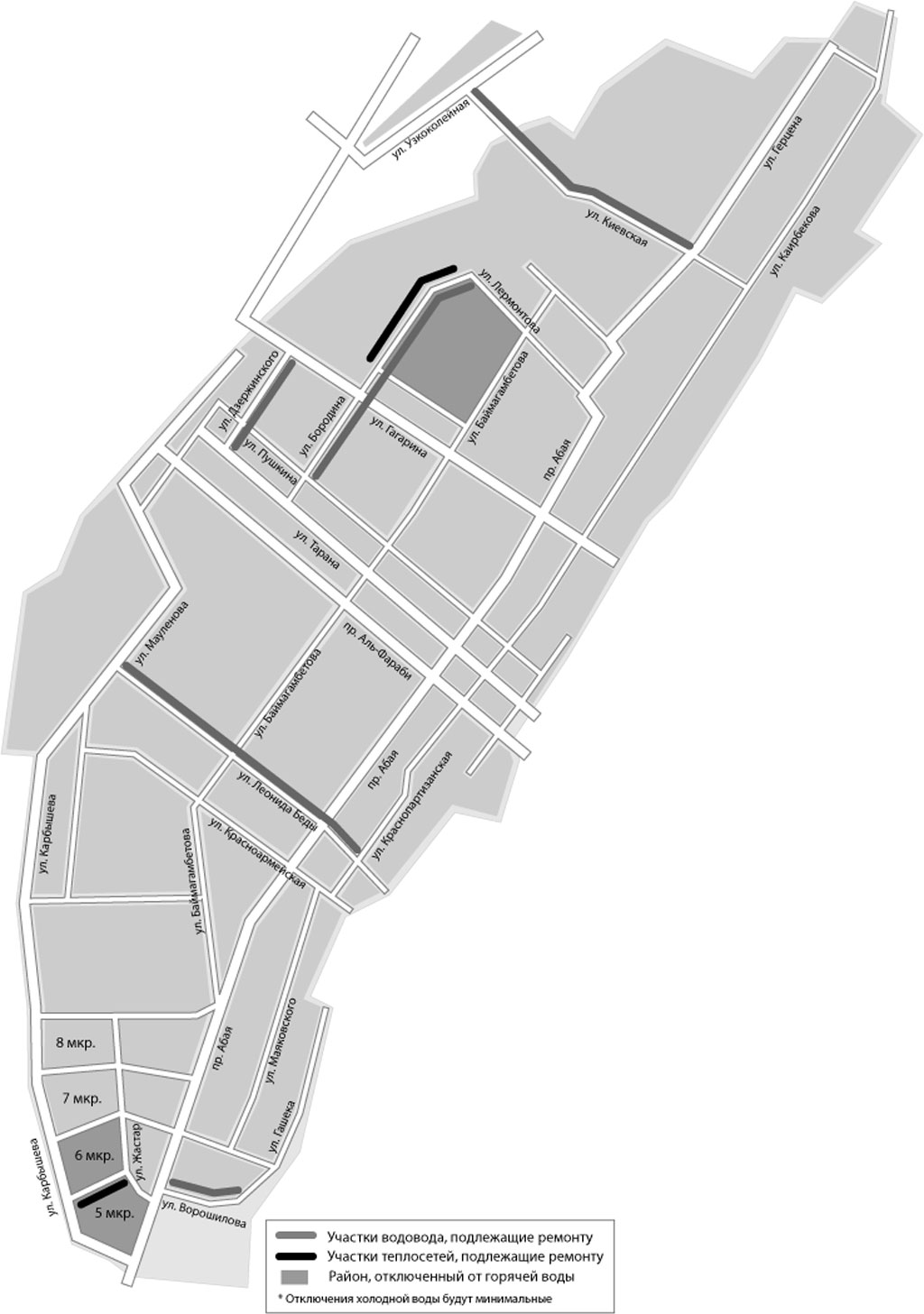 Схема ремонтных работ ГКП «Костанай-Су» и ГКП «КТЭК» летом 2009 года.