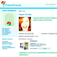 Сервис ОченьХочу.ру сделан для того, чтобы исключить вероятность неудачного подарка. Смысл его работы очень прост: зарегистрированный пользователь может составить список своих желаний, в котором перечислит все то, что мечтает получить и чему он наверняка будет рад. Пользователю этой услуги даже не нужно специально присылать такой список друзьям, достаточно поставить ссылку в автоматической подписи электронного письма или в подписи на форуме.