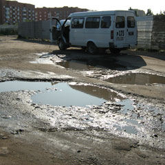 автовокзала. Здесь настоящее бездорожье: раскуроченный асфальт, ямы, а после