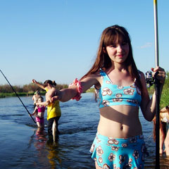 Мы с Сабенеем усаживаемся ловить живца. Прикармливаем место кашей со жмыхом, насаживаем на крючок-заглотыш по половинке перловинок. Минут через 10 чебак начинает клевать так, как будто нас только и ждал. Вот только крупноватый для щуки - почти весь величиной с ладошку. Наконец удается поставить кружки и щучьи удочки с тройниками. Хищница никак себя не выявляет, так что кажется - ее здесь нет и никогда не было. Зато чебак клюет, как оглашенный: через два часа в моем садке уже плавает килограмма три. И это при том, что на две удочки ловить невозможно - клюет сразу на обе. Вечерка приходит, как и положено, тихая и прохладная. Сабаней забрасывает спиннинг вдоль кромки кувшинок, медленно вращает ручкой катушки и вдруг... Удилище дергается, изгибается дугой и через несколько секунд в руках у довольного Сабанея трепыхается килограммовая остроносая красавица. Осчастливленный первым удачным забросом, Сабаней кидает без устали в разные стороны, пытаясь попасть блесной ближе к траве - тщетно. В этот вечер больше на спиннинг никакая щука не позарилась. Зато сработал один кружок. На него тоже подсела килограммовая.