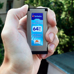 А компания Verbatim решила покорить рынок околокомпьютерных технологий скоростью. Их SSD-накопитель под названием ExpressCard обладает впечатляющими характеристиками: емкость - 16, 32 или 64 Гбайт, интерфейс - PCI Express 1.1, скорость чтения - 120 Мбайт/с, скорость записи - 30 Мбайт/с, уровень вибрации - 5G. Большим плюсом ExpressCard является то, что этот накопитель распознается системой как обычный съемный диск. Никаких драйверов не требуется.