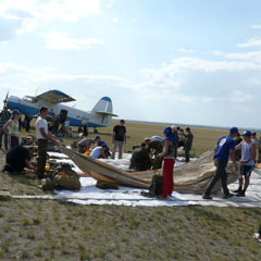 Еще одна традиционная загвоздка - в финансах. Свои парашюты Казахстан не выпускает, приходится закупать в России. Основной парашют стоит в пересчете на наши деньги около 400 тыс. тенге, запасной - около 250 тыс. тенге.