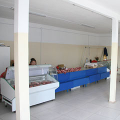 26 августа, ближе к обеду, в павильонах - по одному продавцу. Предлагают говядину и молоко. С утра торгующих было больше, но столпотворения, по словам администатора рынка, пока не наблюдается. Не приспособились к будням еще ни торговцы, ни покупатели.