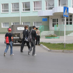 Перед СШ №1 выходить детям на дорогу приходится с газона, причем дорожная разметка отсутствует