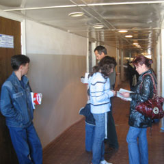 Между тем очередь все прибывает. Рядом с кабинетом фтизиатра - кабинет. Студенты и школьники давно перемешались с пациентами фтизиатра. Коридор плотно забит людьми. Между тем кабинет фтизиатра постепенно превратился в проходной двор. Люди подходят и без всякой очереди входят в кабинет: «Я за лекарством», «Я за результатами анализов». Слыша такие ответы, родители предпочитают не спорить.