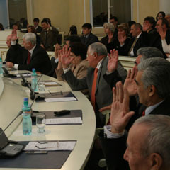 В купольном зале филармонии прошло расширенное заседание областной Ассамблеи народа Казахстана с участием представителей политических партий и неправительственных организаций. Главный вопрос повестки дня - обсуждение доктрины национального единства, с которой на 15-й сессии республиканской Ассамблеи народа Казахстана выступал президент РК Нурсултан Назарбаев.
